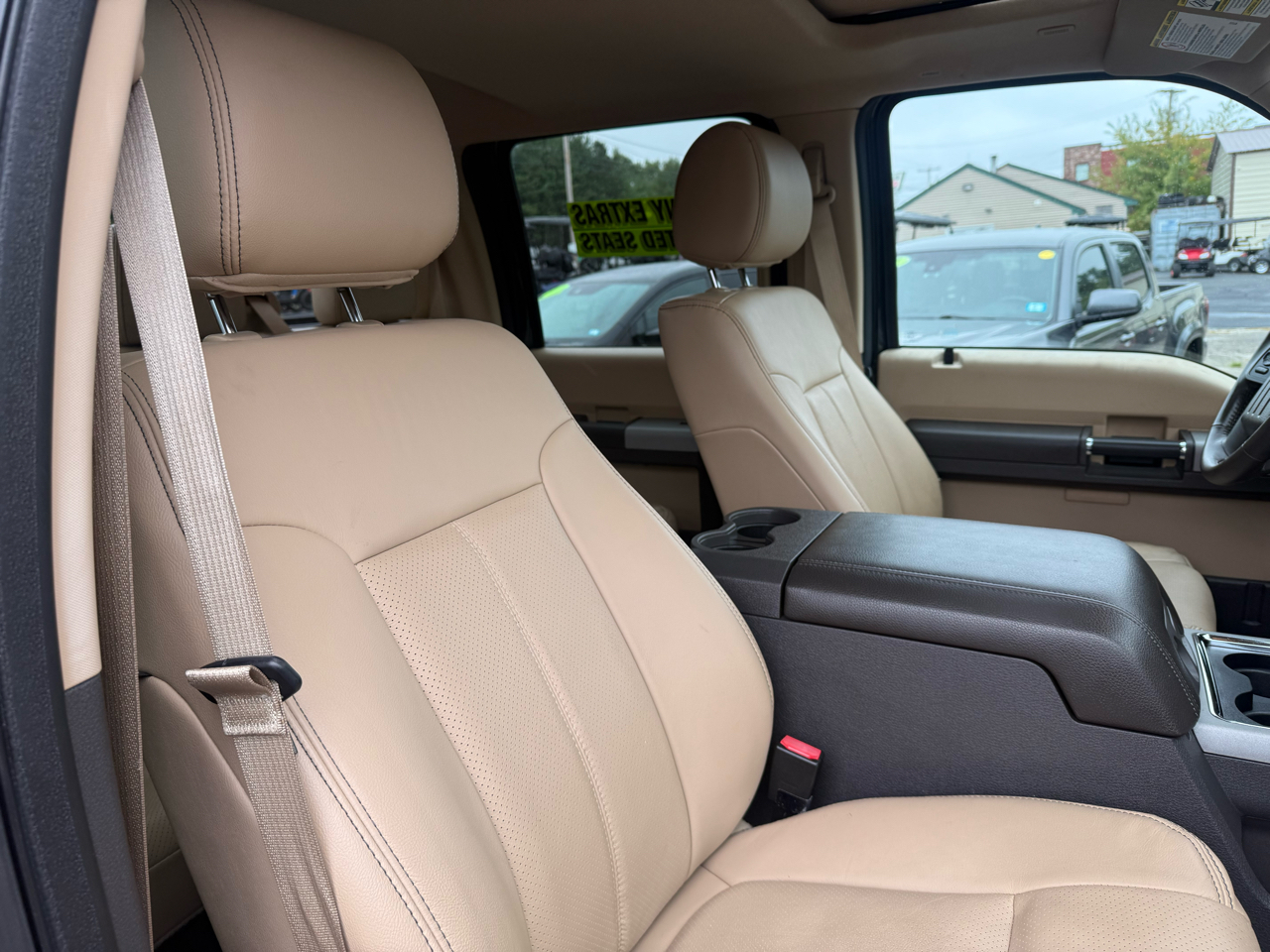 2015 FORD F-250 LARIAT CREW CAB 4X4, 6.2L V8, ALL POWER OPTIONS AND FULLY LOADED, HEATED AND COOLED BEIGE LEATHER INTERIOR, FACTORY NAVIGATION, BLUETOOTH, BACKUP CAMERA, SONY SOUND, POWER SUNROOF, 1 OWNER, CLEAN CARFAX, CHROME FORD WHEELS, 14K MILES, WILL COME FULLY SERVICED WITH STATE INSPECTION, WARRANTY.